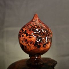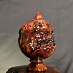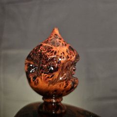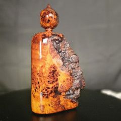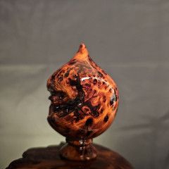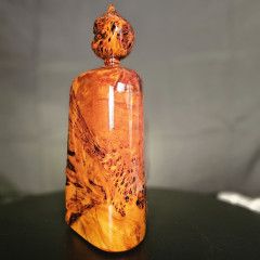 這件寶瓶,正是把 黃檜的油、黃檜的香、黃檜的光感,與土豆榴花的紋理層次 結合在一起,